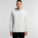Zip hood, CVC fleece, 2-way YKK zip, inset sleeves, self-fabric hood lining, 2x2 cuff and hem ribbing